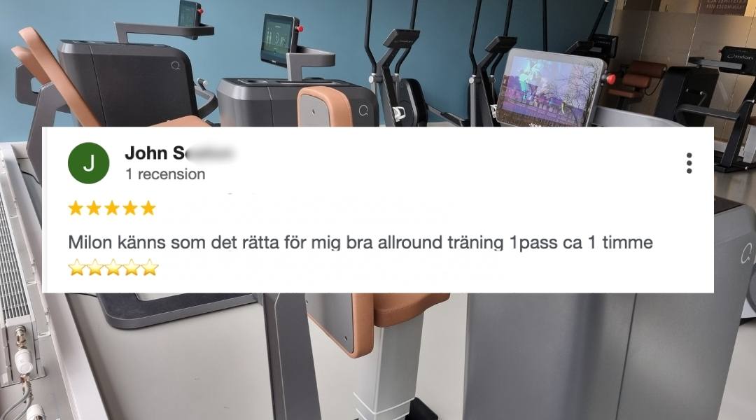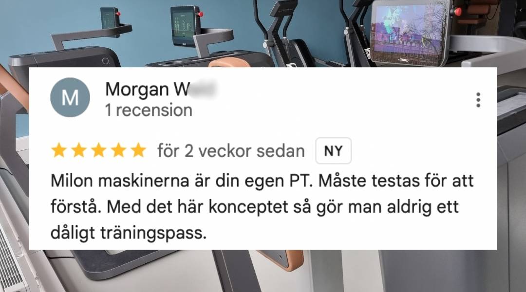 Milon är träningsutrustning som använder AI för att anpassa träningen efter din kropp. Maskinerna justeras automatiskt, vilket sparar tid och gör träningen mer effektiv – upp till 30% snabbare resultat.